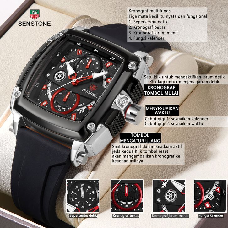 TERLARIS SENSTONE JAM TANGAN PRIATERBARU ASLI ANTI AIR KALENDER BERCAHAYA MEWAH HITAM MEWAH BAJA TAHAN KARAT JAM PRIA K