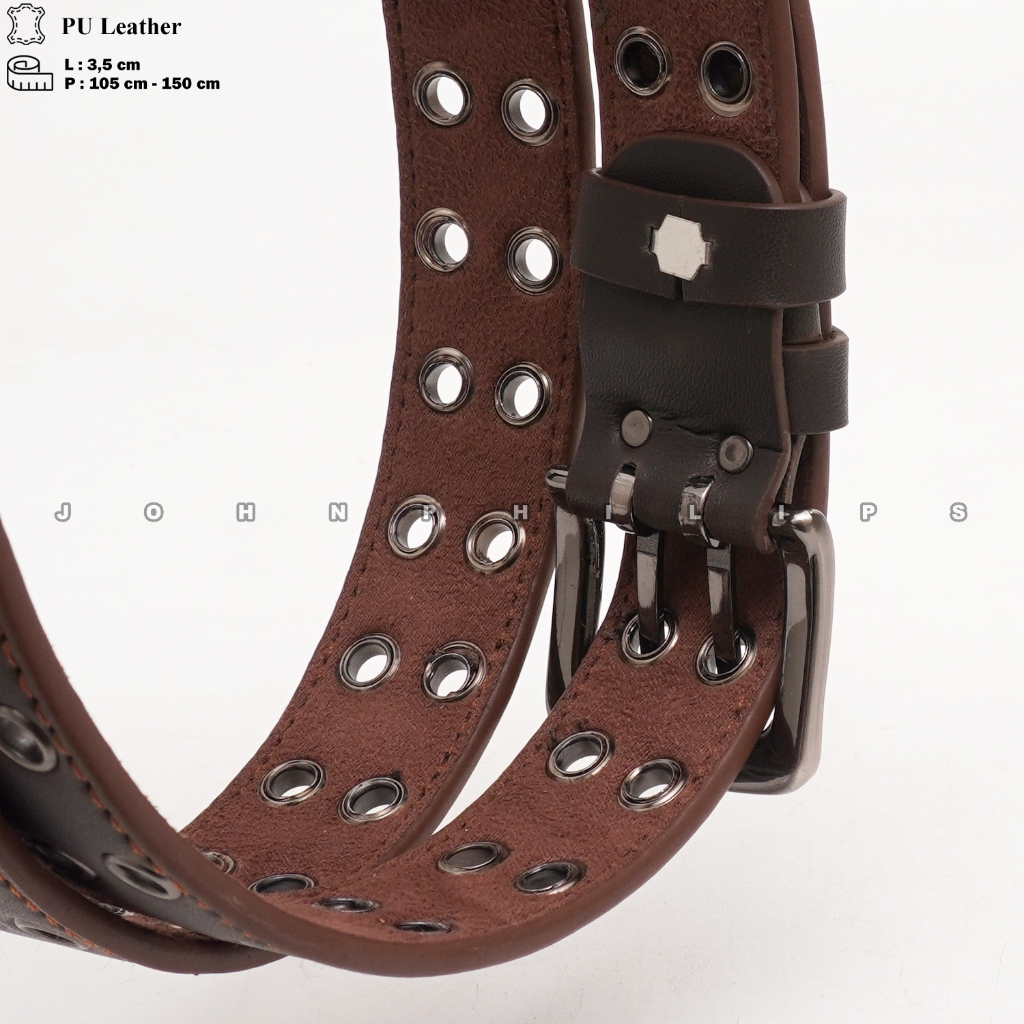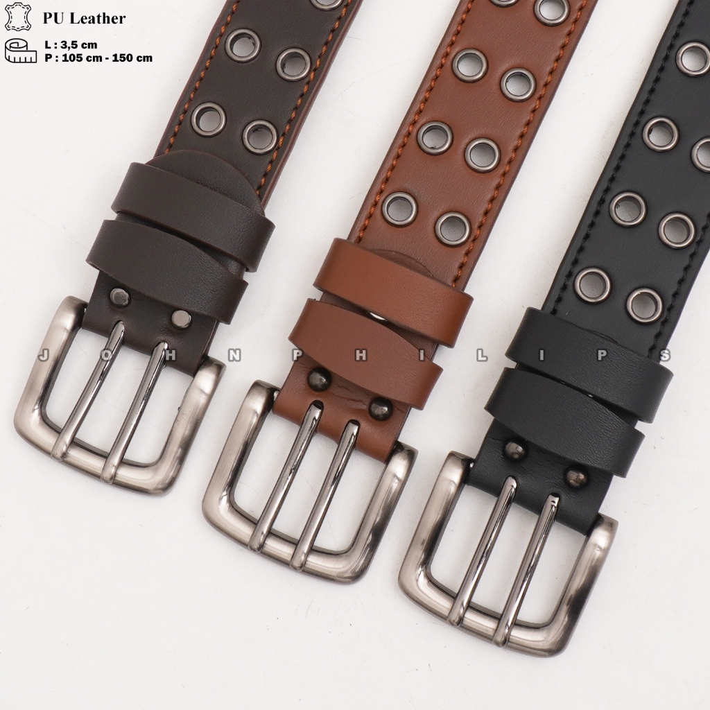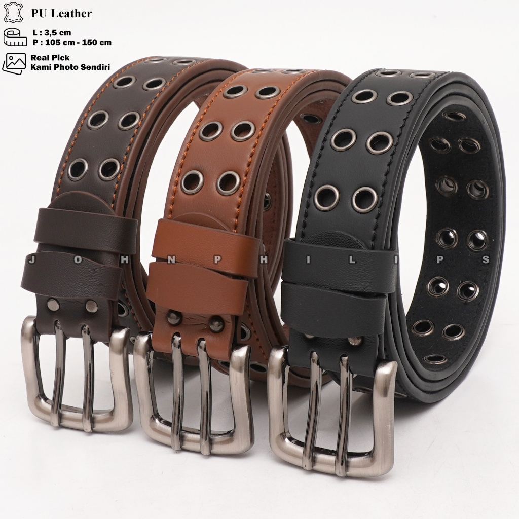 Ikat Pinggang Cowok Doubel Jarum Sabuk Kulit Pu Premium Aksesoris Lebar 3,5 cm