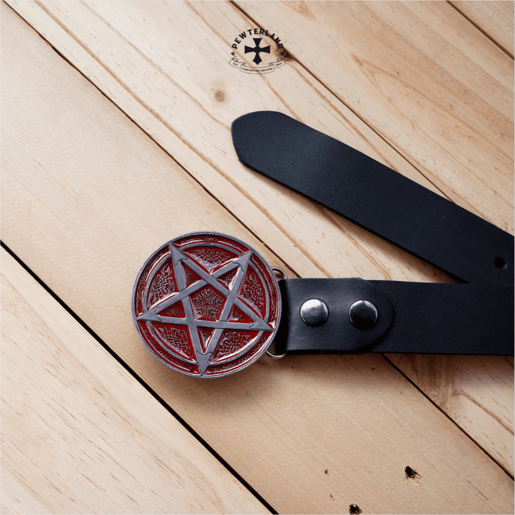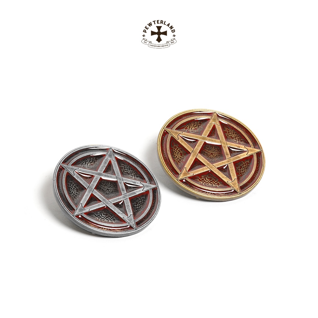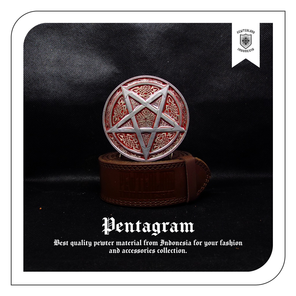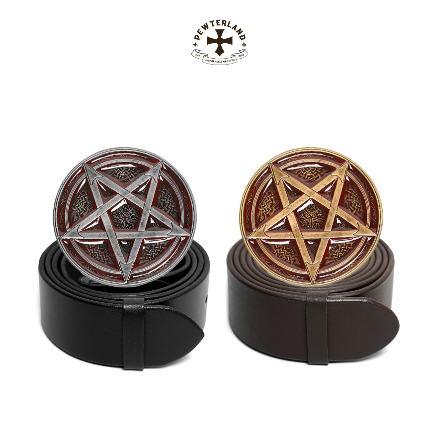 Pewterland Kepala Sabuk Pentagram Bahan Logam Timah & Kulit Hitam Coklat Pria dan Wanita