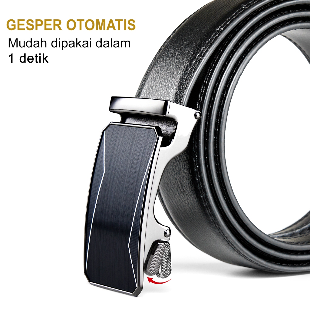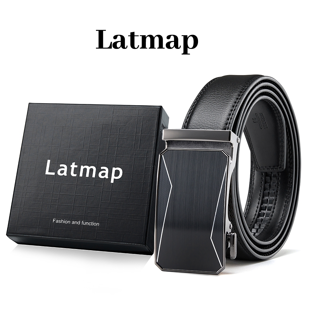 Latmap Sabuk Ikat Pinggang Pria Kulit Sapi Asli Gesper Otomatis Dapat Disesuaikan Sabuk Kulit Pria Belt Pria P008