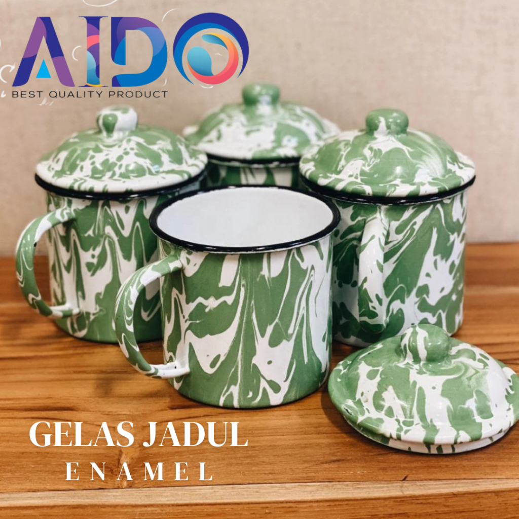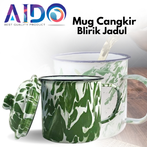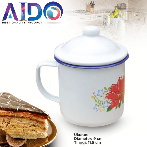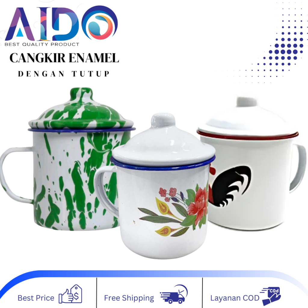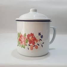 Cangkir Mung Enamel / Cangkir Mug Kopi Jadul Enamel / Cangkir Mug + Tutup Mug Jadul / 5008 5308