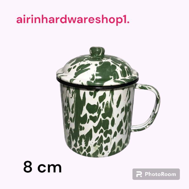 Cangkir mug enamel lurik 12 cm (1,2 liter) 10 cm(700 ml) 9 cm (500 ml) 8 cm 300 ml cangkir burik dengan tutup cangkir ko