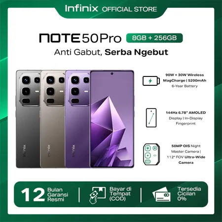 [Mall] INFINIX NOTE 50 PRO 8/256GB UP TO 16GB EXTENDED RAM-HELIO G100 ULTIMATE - 6.78 FHD+AMOLED-50MP 5200MAH TERLARIS
