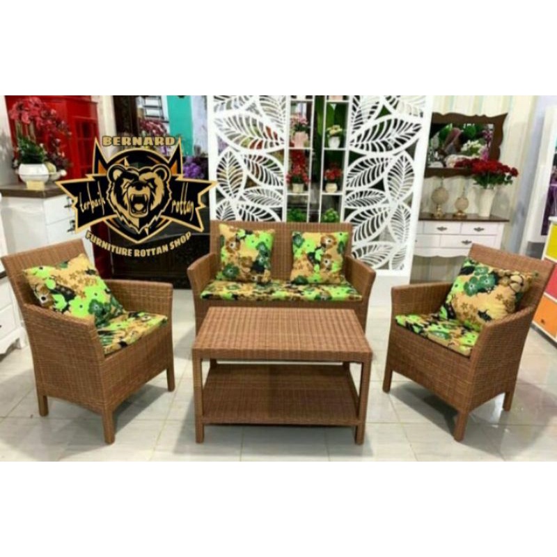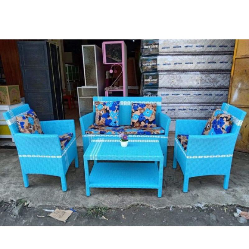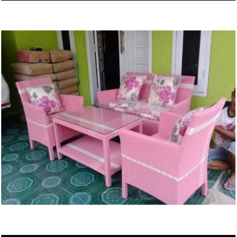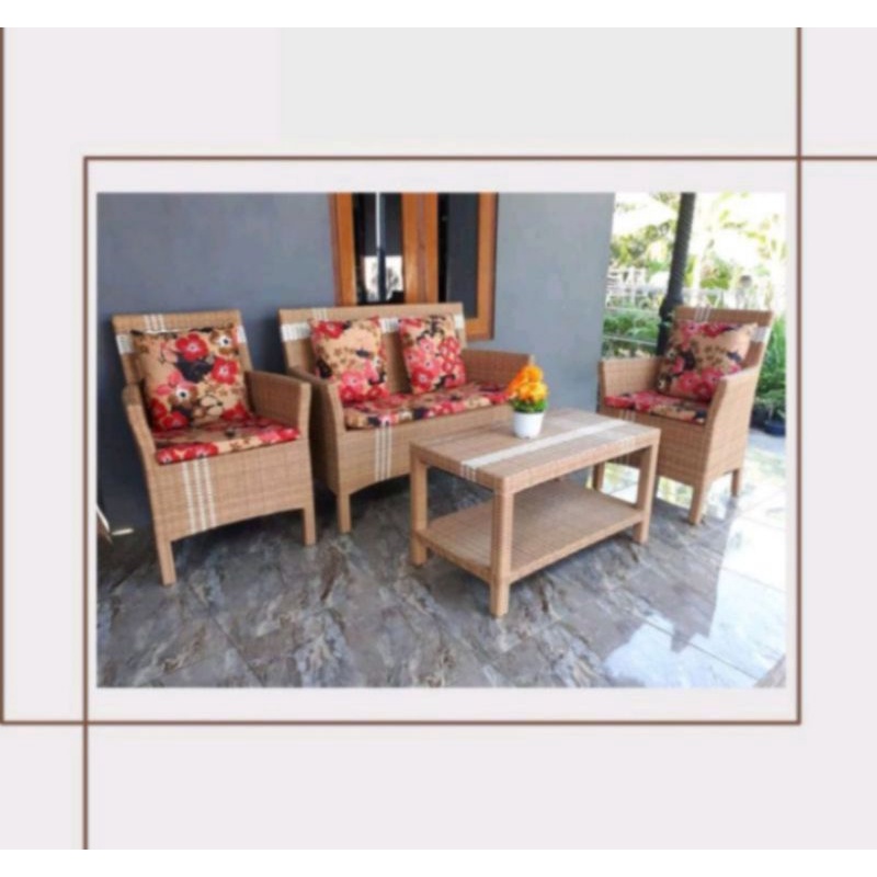 1 Set Kursi Teras Korsi Bangku Sofa Hawai Santai Rotan Sintetis Furniture Set Meja Panjang Teras Ruang Tamu Taman Balkon