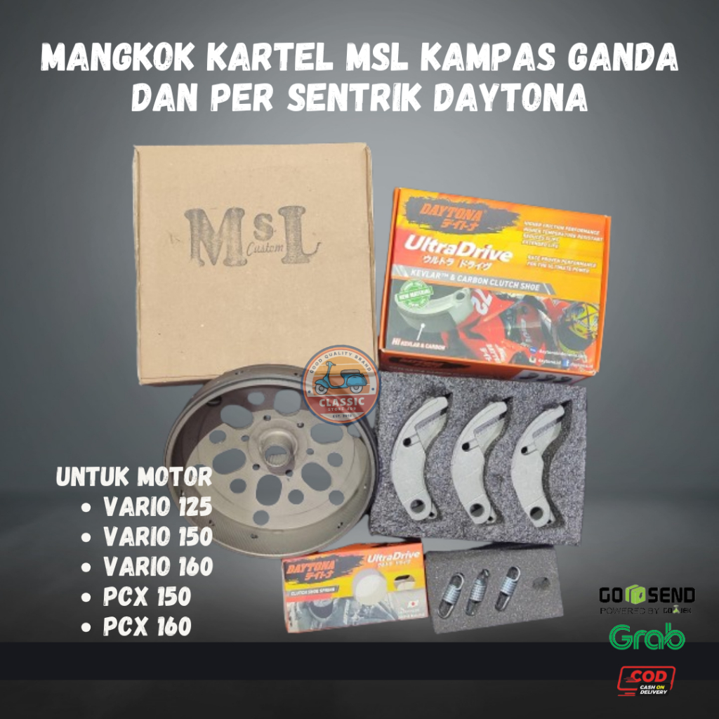 Paket CVT Daytona Vario 125 150 160 PCX 150 160 – Mangkok MSL, Kampas Ganda, Per Sentrik