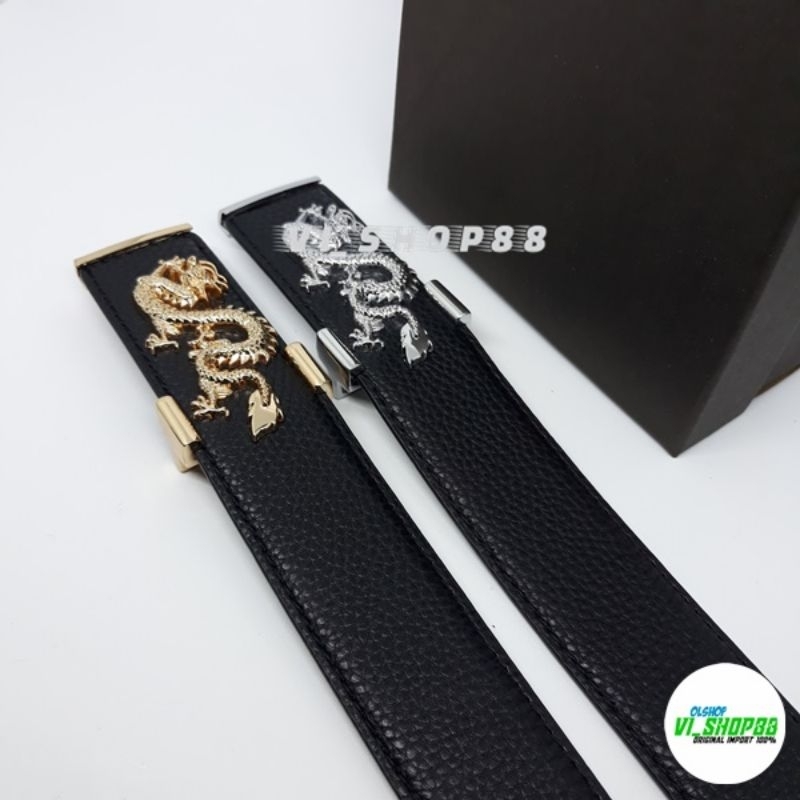IKAT PINGGANG PRIA LOGO NAGA 3CM MODEL CANTOL GOLD SILVER