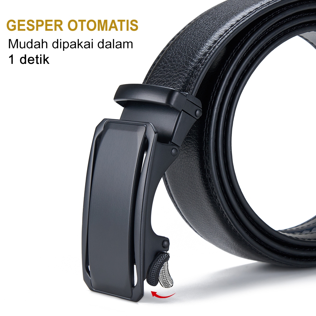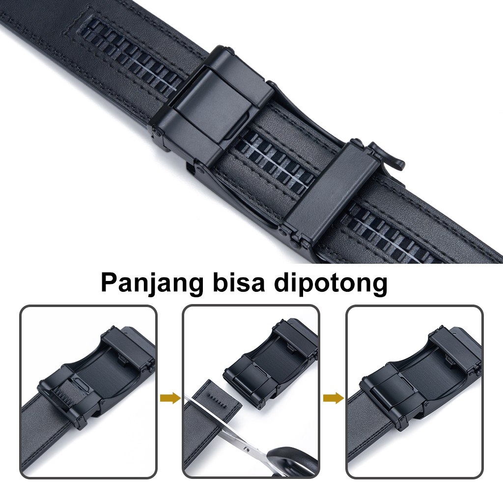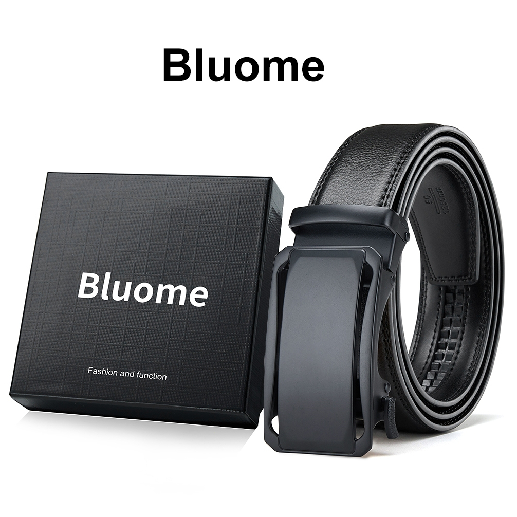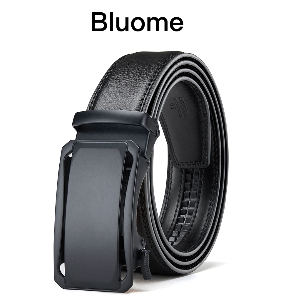 Bluome Sabuk Pria Kulit Sapi Asli Tali Ikat Pinggang Belt Pria Automatic Gesper Rel Hitam Casual