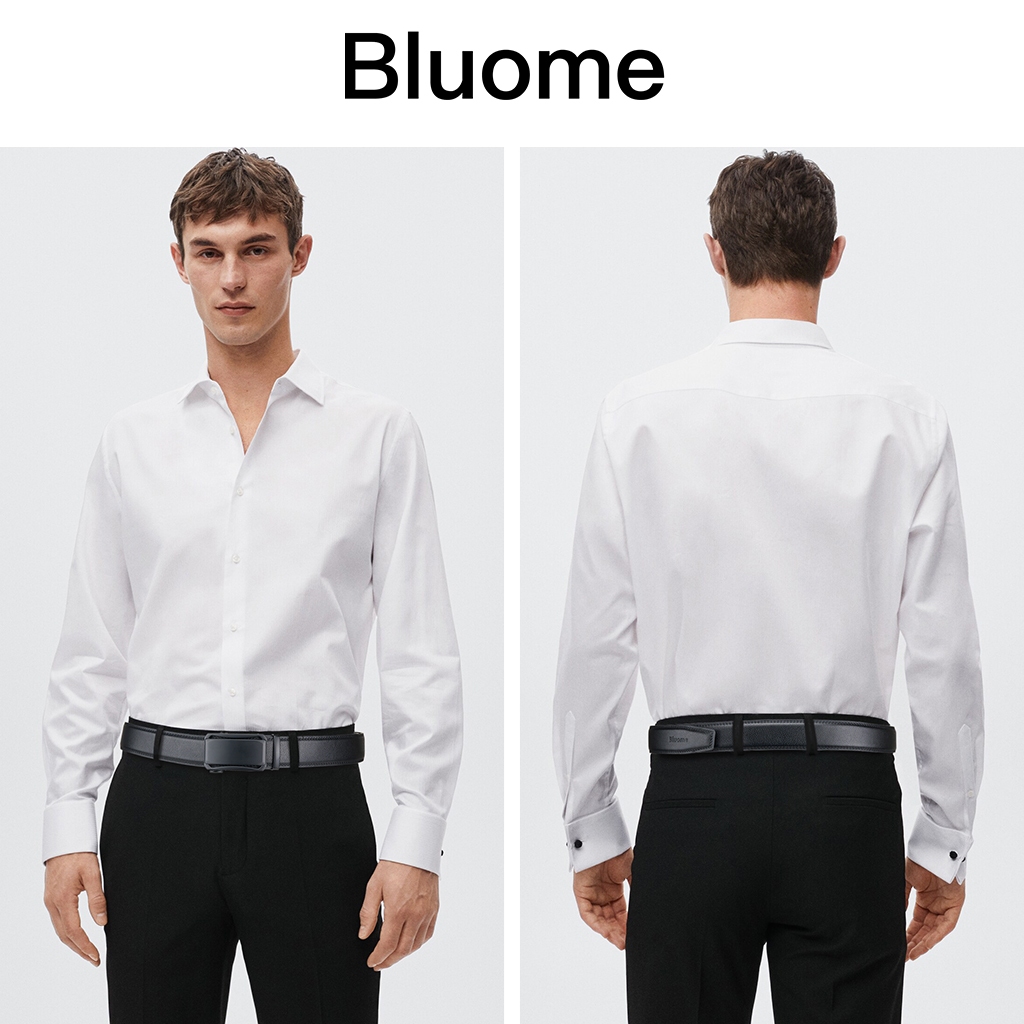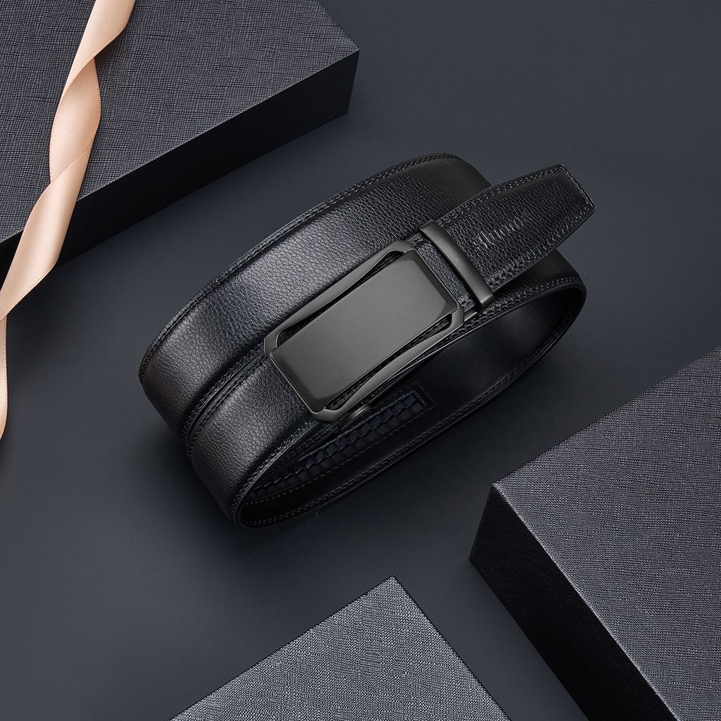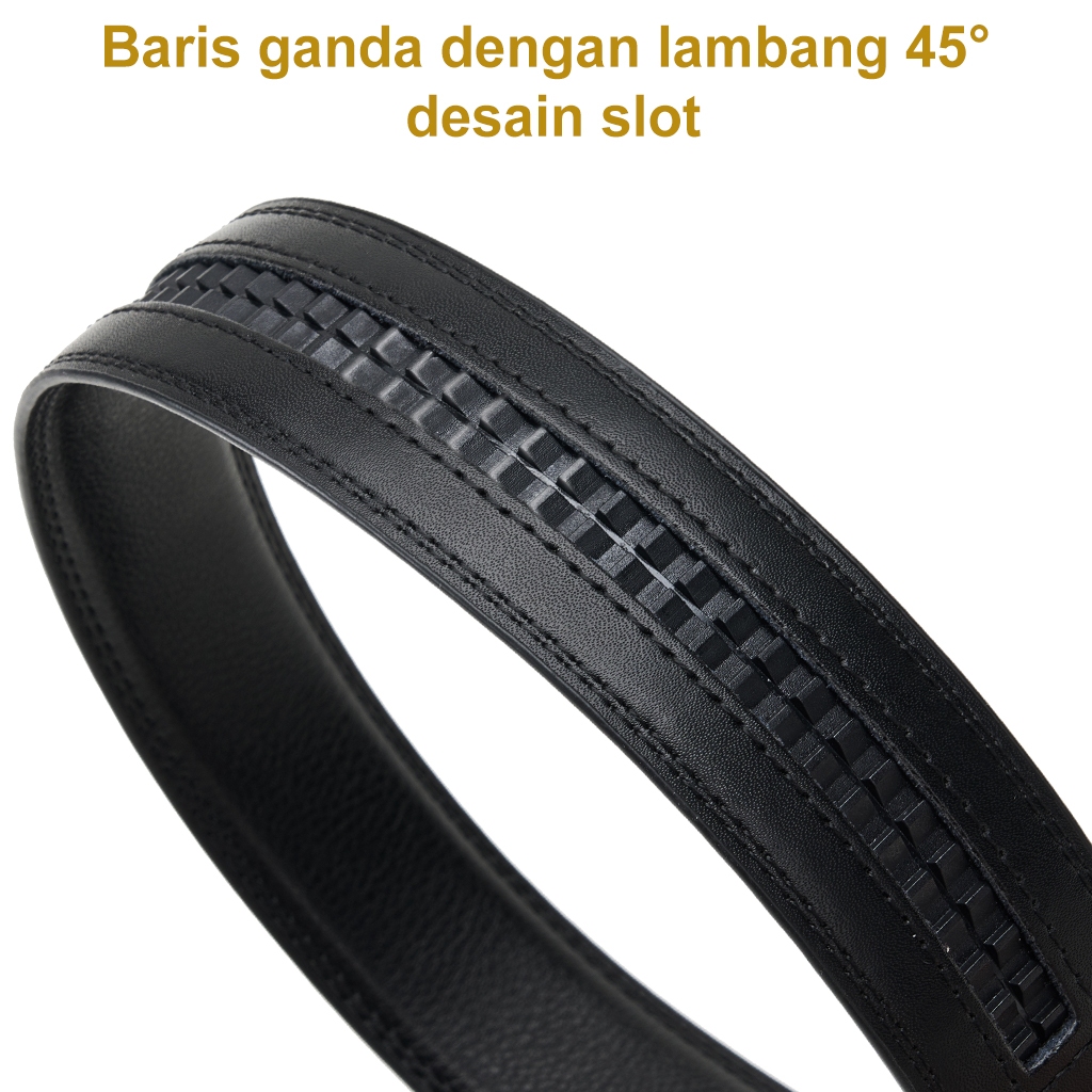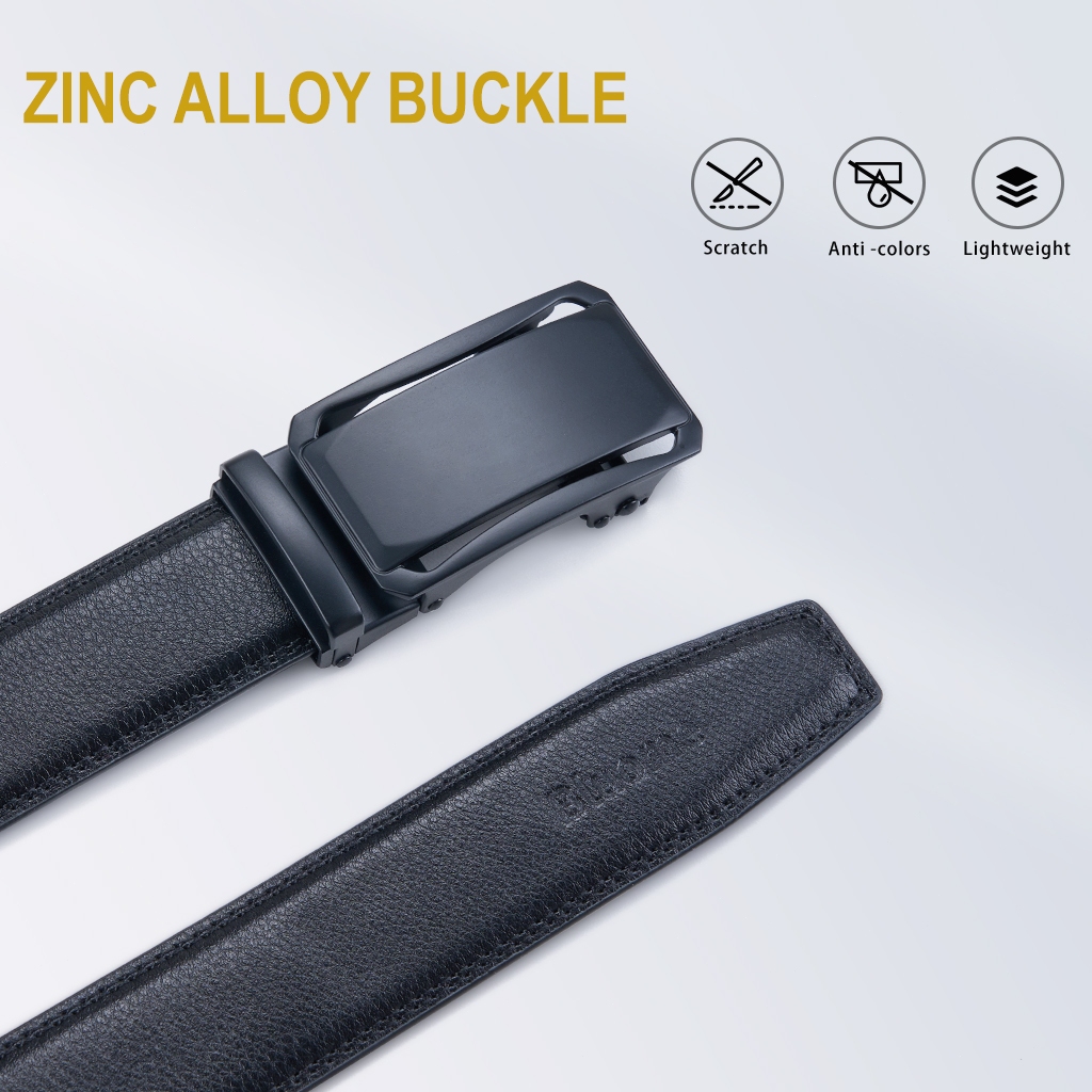 Bluome Sabuk Pria Kulit Sapi Asli Tali Ikat Pinggang Belt Pria Automatic Gesper Rel Hitam Casual