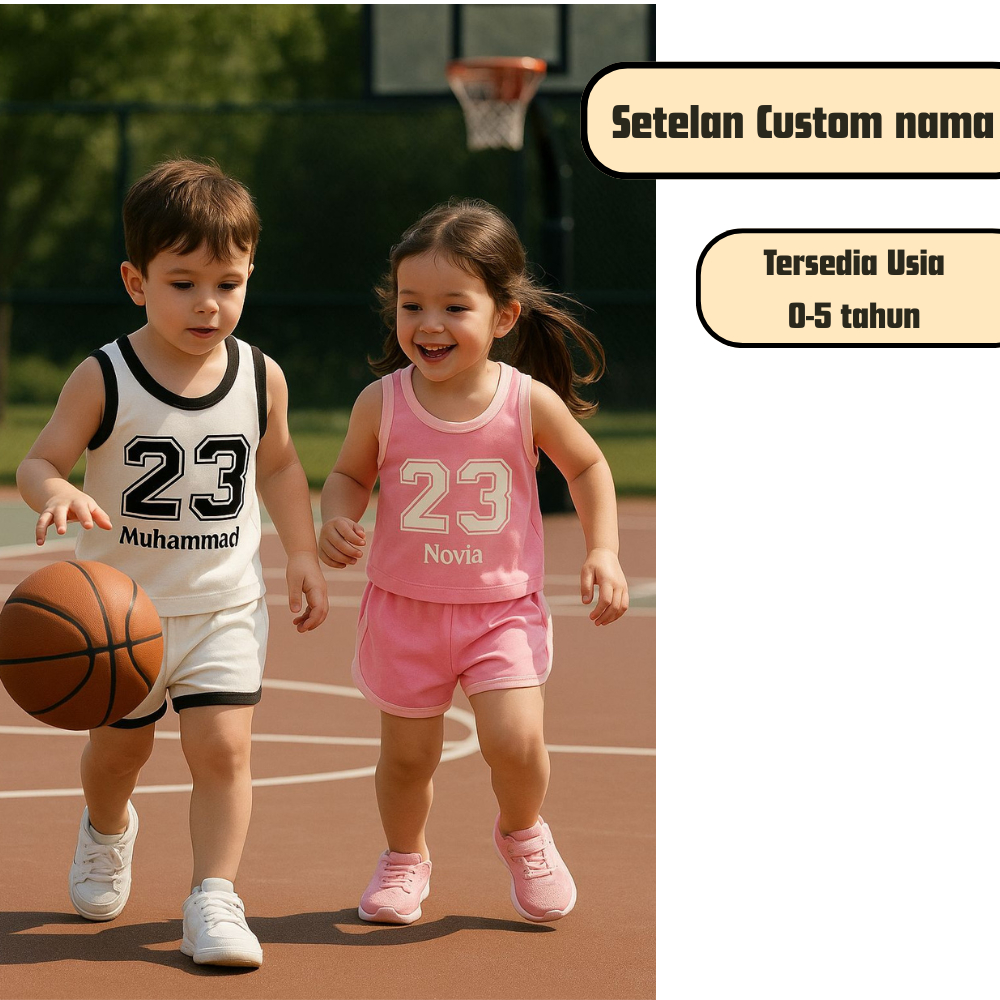 Setelan Custom Nama / Baju Bayi Basket Laki Laki Perempuan