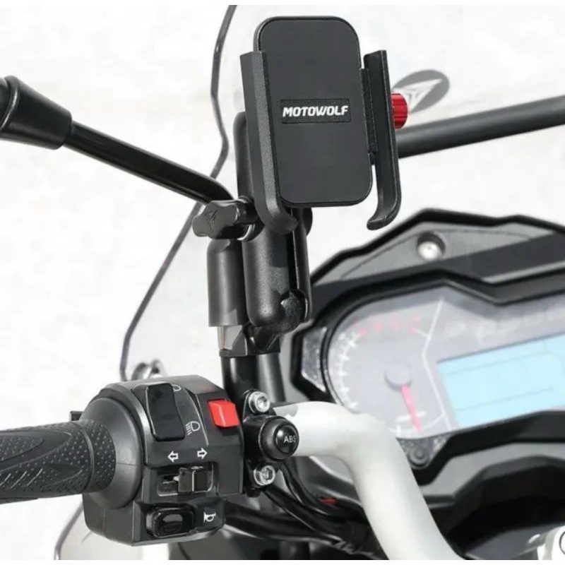 Holder HP MOTOWOLF V3 DUDUKAN SPION & STANG MOTOR Plus USB Charger Rotate 360 Universal