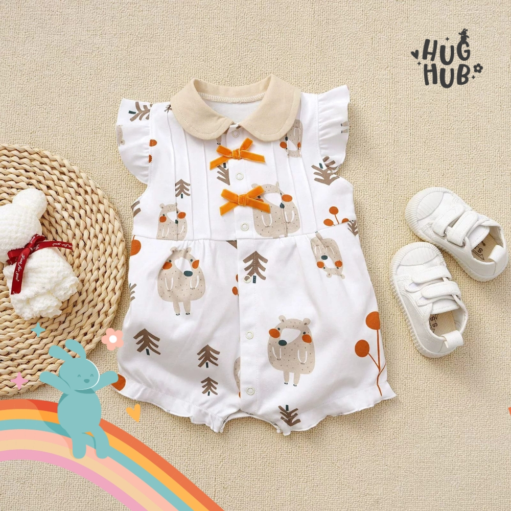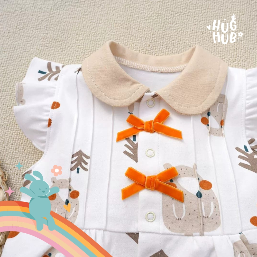 Hughub Jumper Bayi Perempuan Motif Pita Oren Usia 0-12 Bulan Bodysuit Lucu Bahan Katun