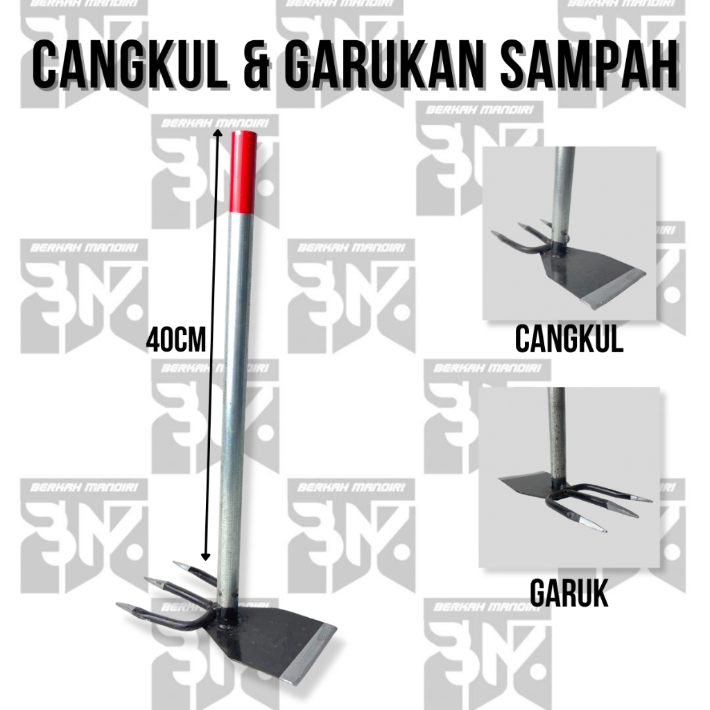 Cangkul Garukan 2in1 Gagang besi Pacul taman/Kebun Mini Garpu Sampah Selokan/Got Baja Koret Kored Gathul Sekop/Cangkul M