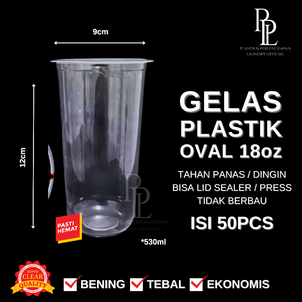 1 PACK Gelas Plastik 18oz OVAL 530 ml | Gelas Plastik Bening ES | CUP 18oz OVAL 1pack isi 50pcs
