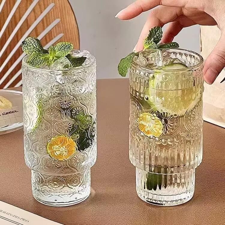 Gelas Air Minum Anggur Jus Italia Vintage Relief Gelas Minum Bir Cangkir Kopi KEMORELA GELAS KACA KOPI TEH Stripe Origam