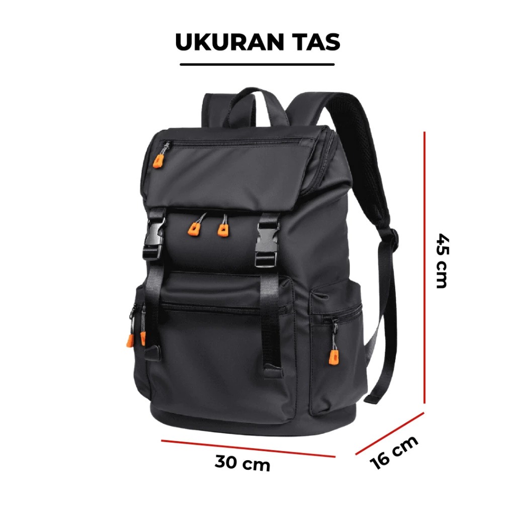 Xavier - Tas Ransel Sekolah Hitam Unisex Backpack Ala Korea Ada Slot Laptop Muat Banyak