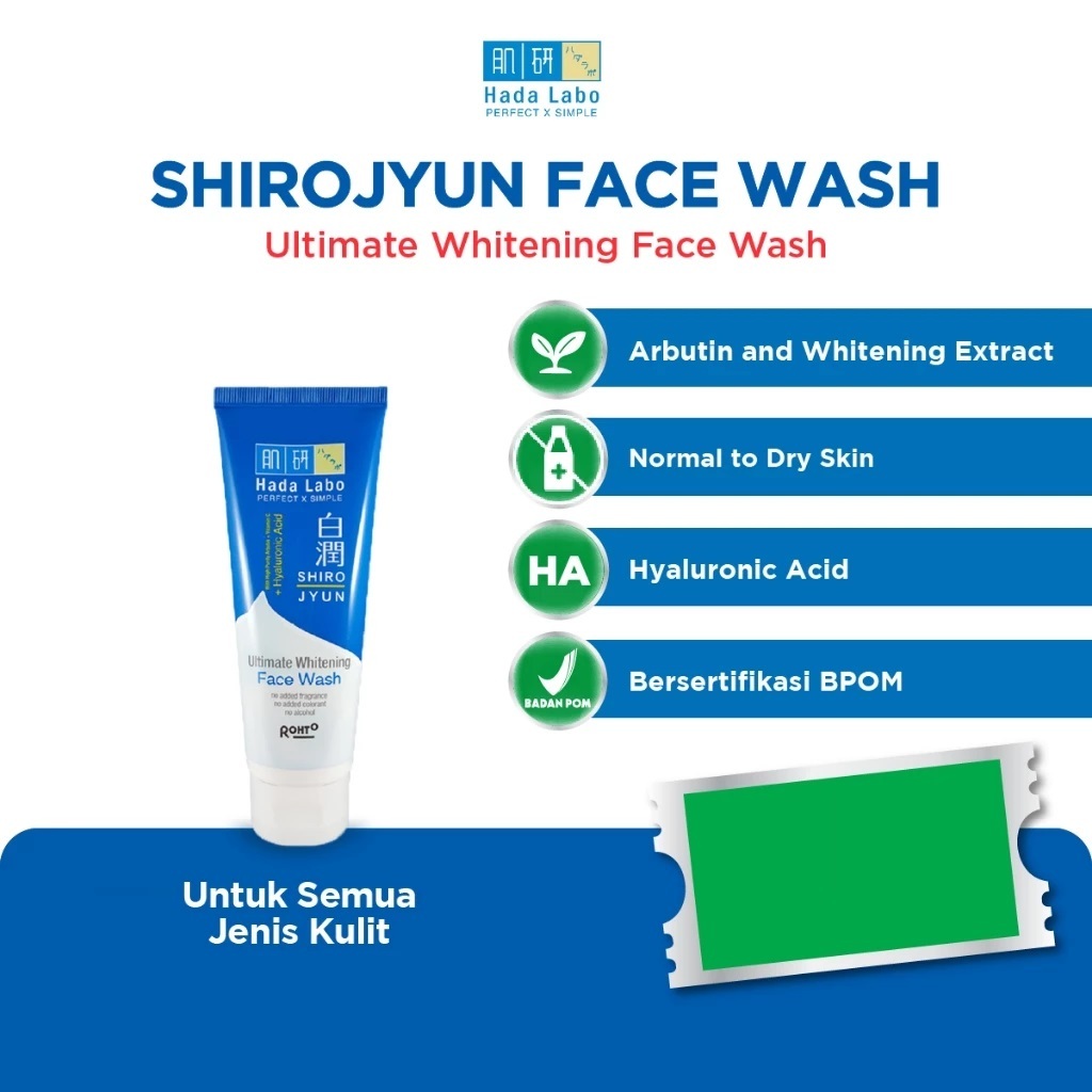 Hada Labo Shirojyun Gokujyun Ultimate Whitening Face Wash 100gr / 50gr Hadalabo Pembersih Wajah