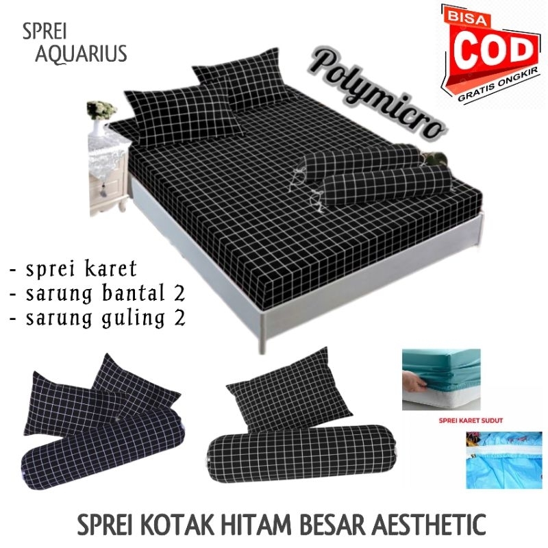 Sprei Kotak Kotak Hitam Aesthetic Ukuran king No1 180x200