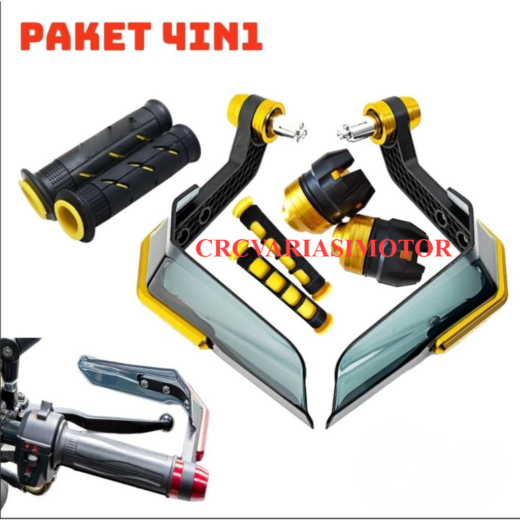 PAKET 4IN1 PROGUARD ALMINI SUPERMOTO + GRIP SISIK + KARET HANDLE + JALU AS NAGA CUSTOM HANDGUARD KLX150 CRF150 VIXION WR155 UNIVERSAL MOTOR TRAIL MERK PROTAPER