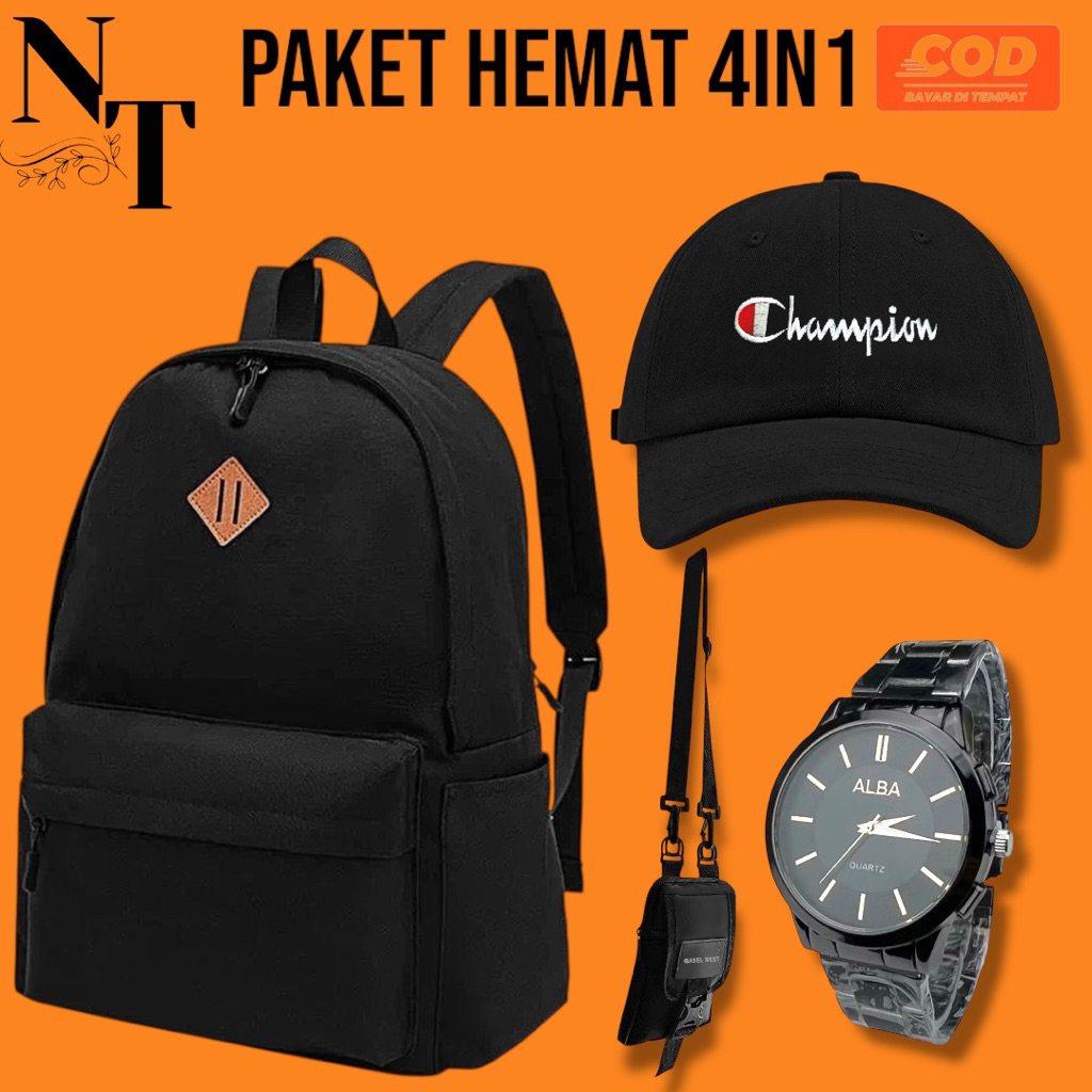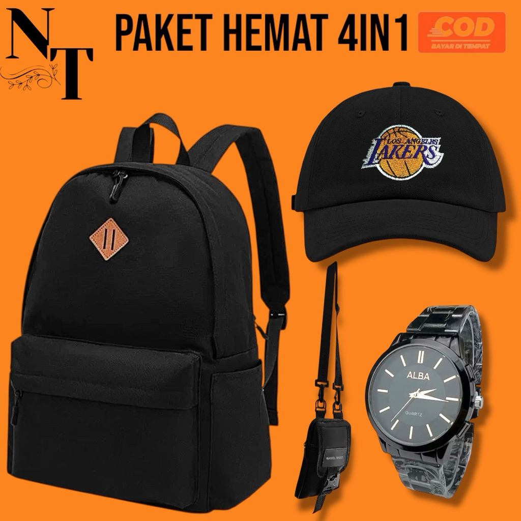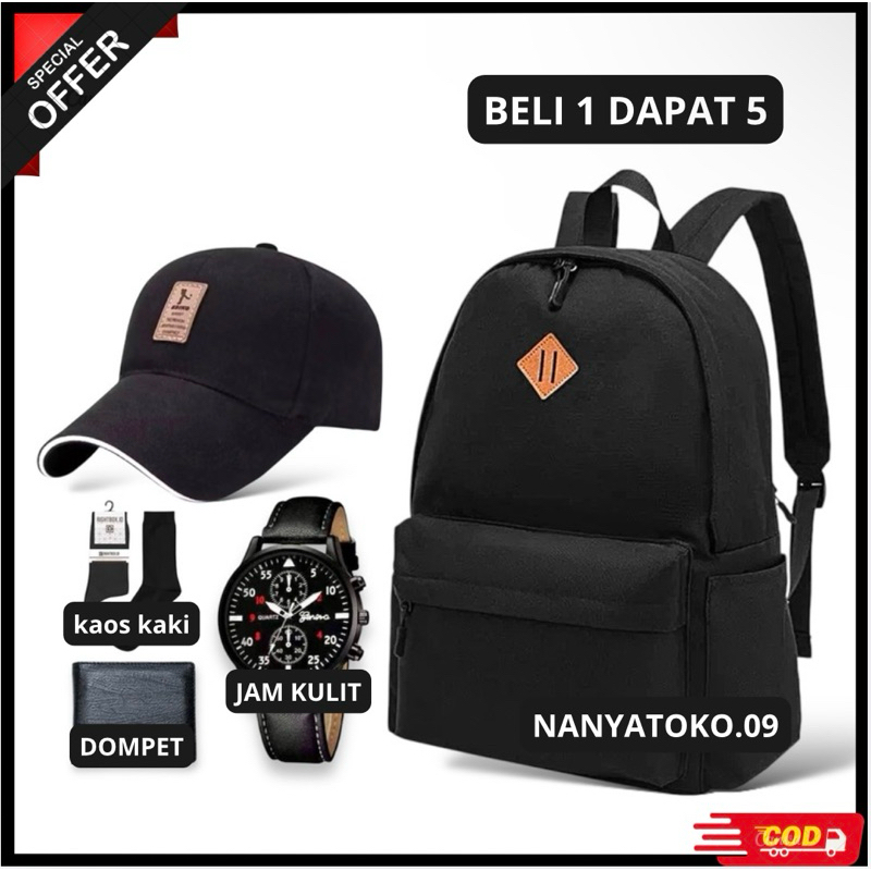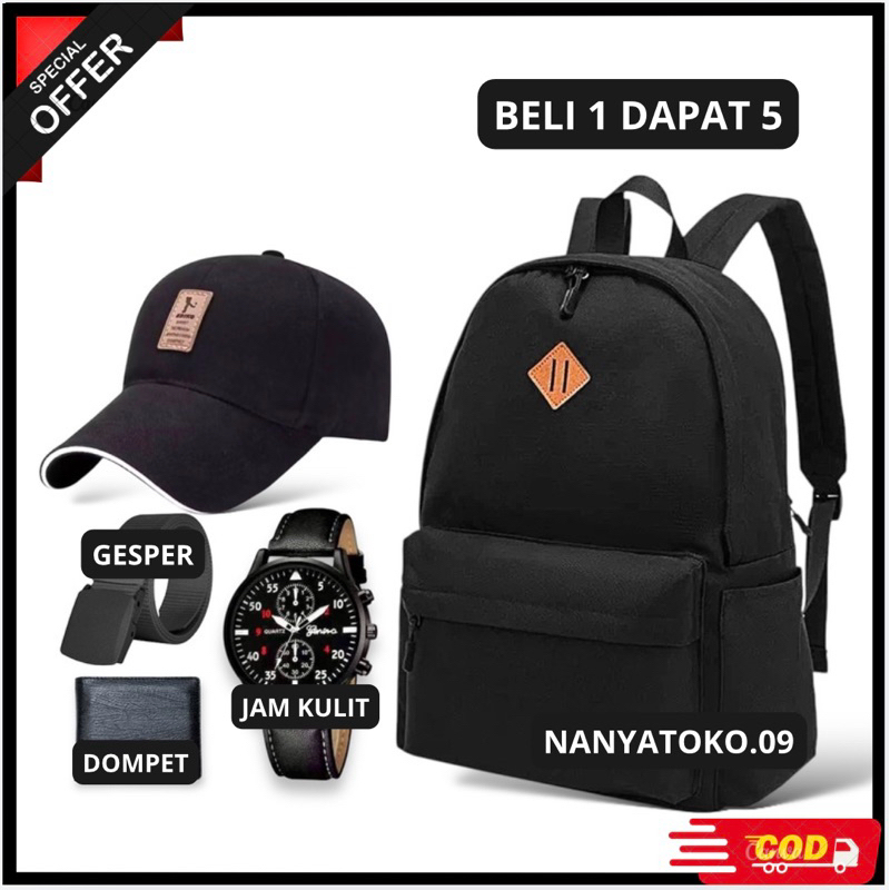PAKET (3in1,4in1,5in1,10in1) Tas Ransel Sekolah Gratis,Topi Distro,Jam Tangan Kulit,Dompet Kulit,Dan Parfum/Ransel pria/ransel sekolah/paket sekolah/Paket bundling Pria Terbaik