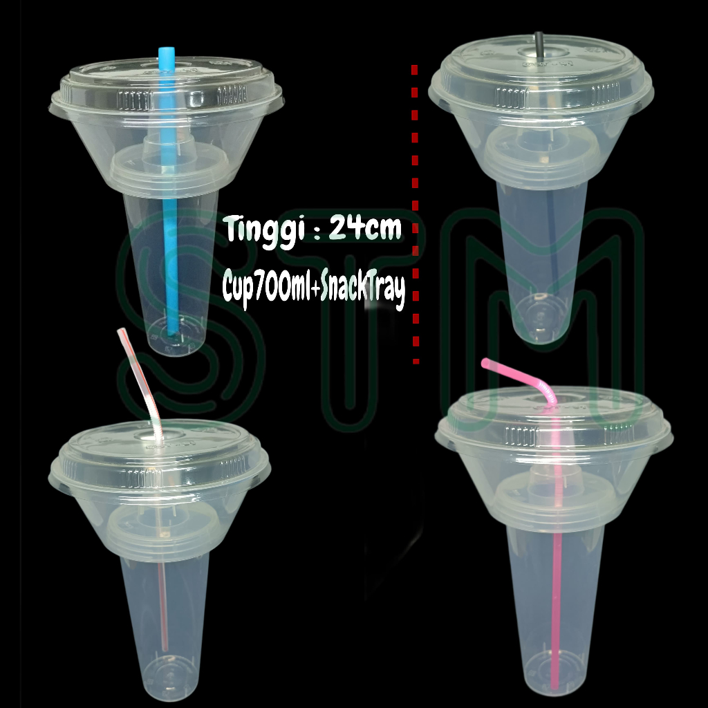 Snack Tray+Cup Slim Tinggi PP Injection Thinwall Langsing Set 2in1 Wadah Makanan Minuman