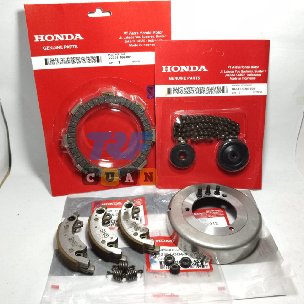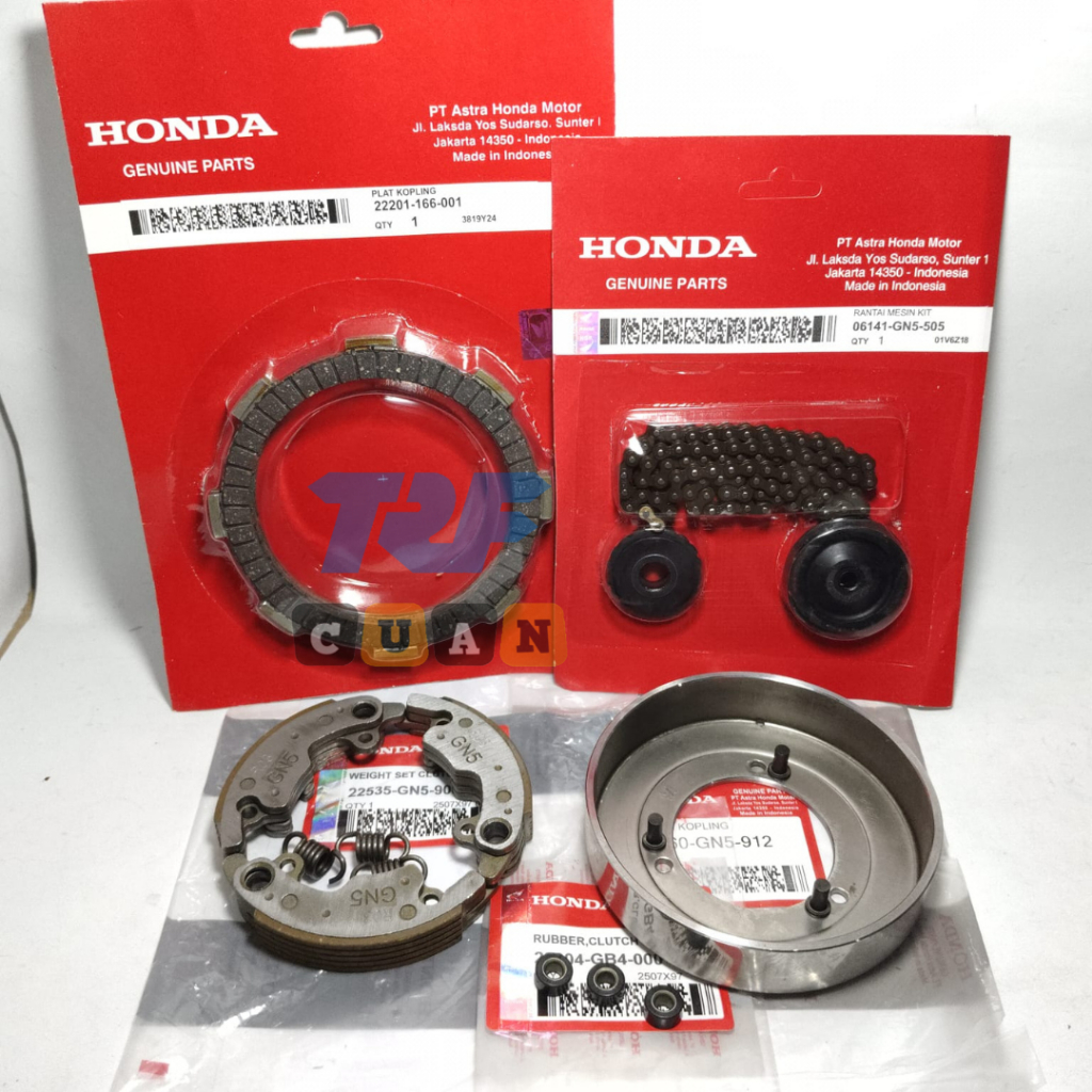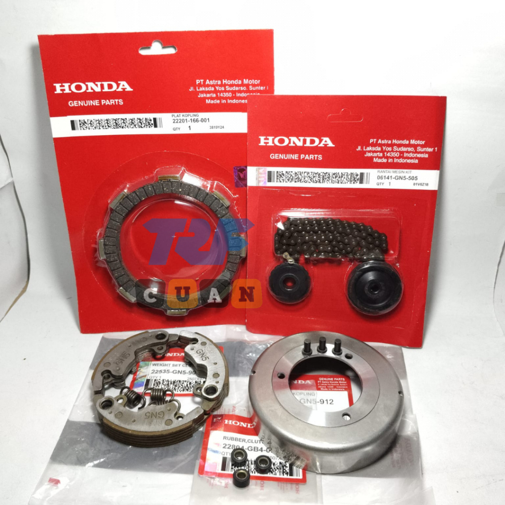 Paket Kopling Grand Supra X Lama Prima Mangkok Kampas Ganda Plat kopling Rantai Keteng Set Karet GN5