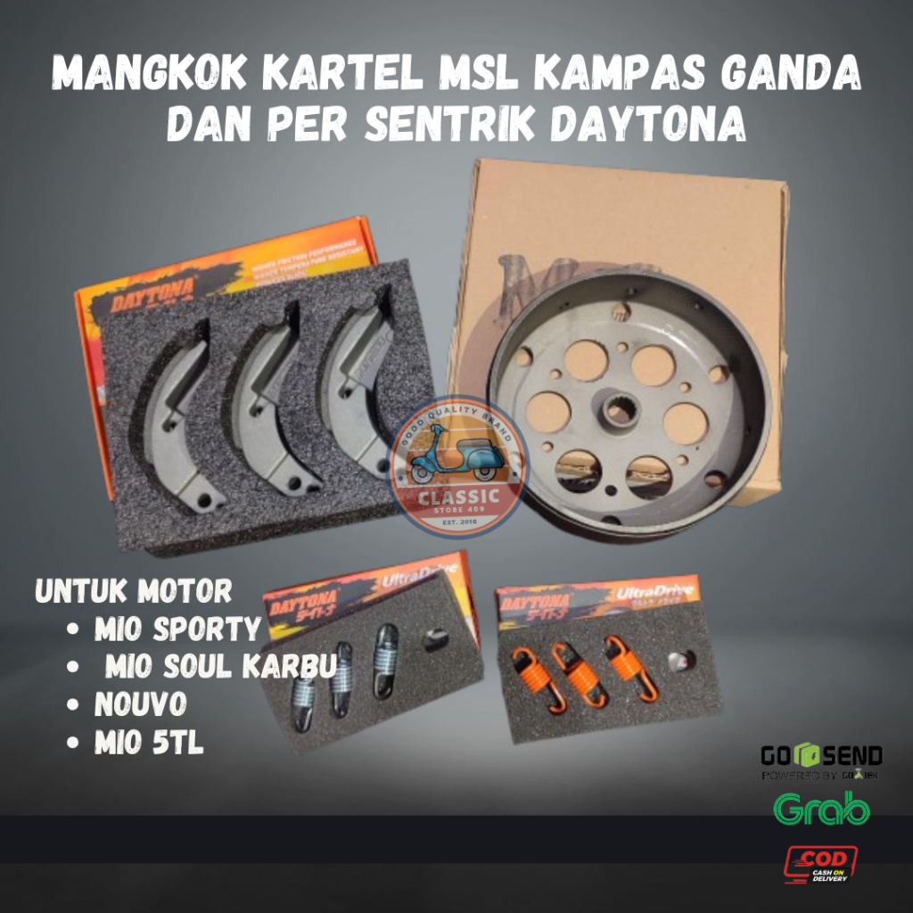 Paket CVT Daytona Mio Sporty Soul Karbu Nouvo – Mangkok MSL, Kampas Ganda & Per Sentrik