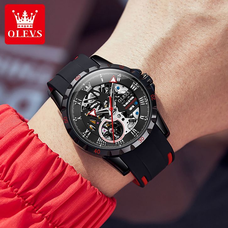 TERLARIS OLEVS JAM TANGAN PRIA ANTI AIR ORIGINAL KEREN AUTOMATIC MEKANIS ANALOG LED OTOMATIS SPORT WATCH TALI SILIKON 9