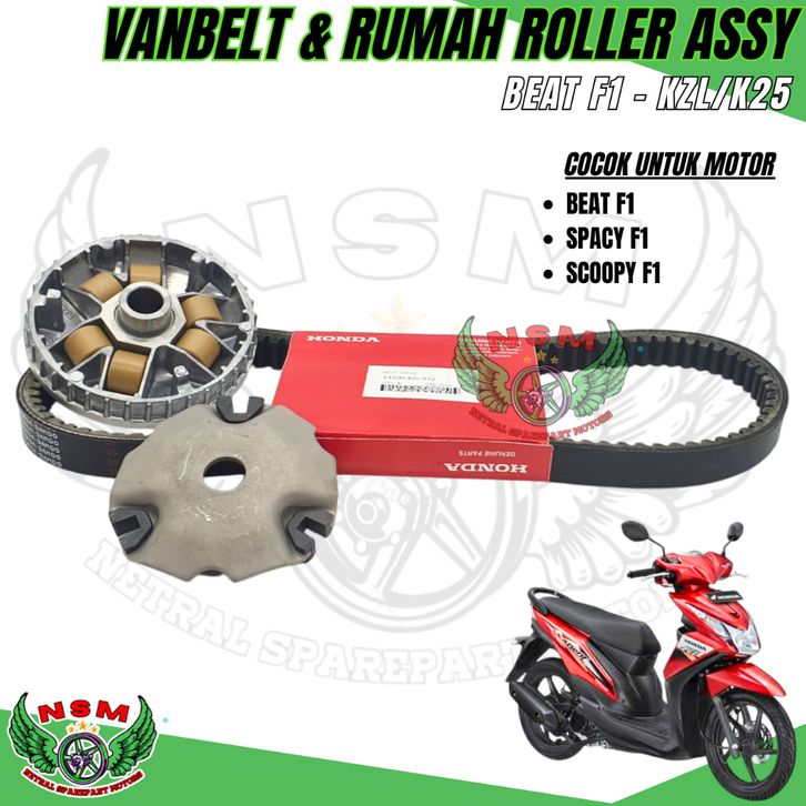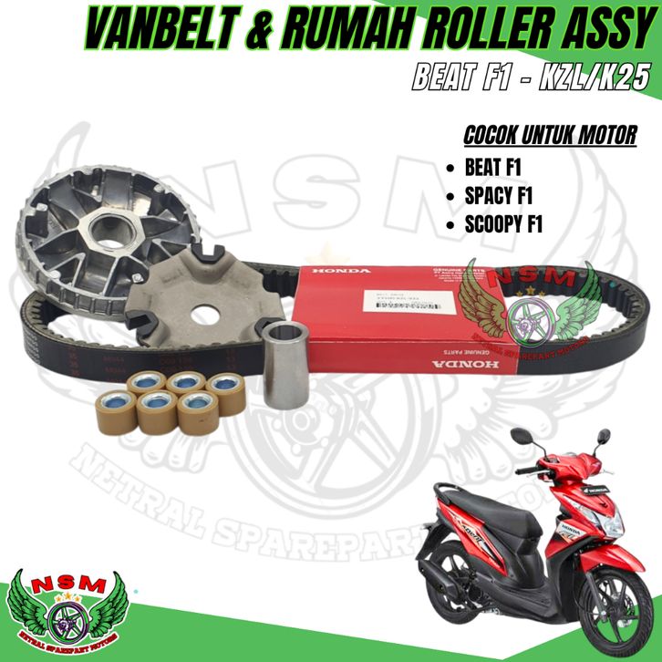 PAKET KIRI CVT BEAT F1 2ITEM RUMAH ROLLER ASSY + VANBELT BEAT SCOOPY F1 SPAC Y F1