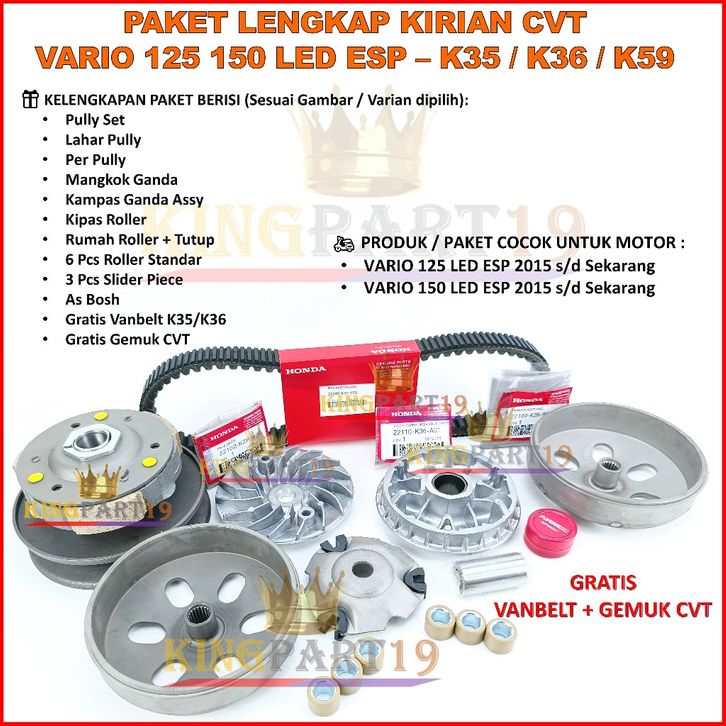 Paket Lengkap Kirian Pully Pulley CVT VARIO 125 150 LED ESP K59 K60 K35 K36