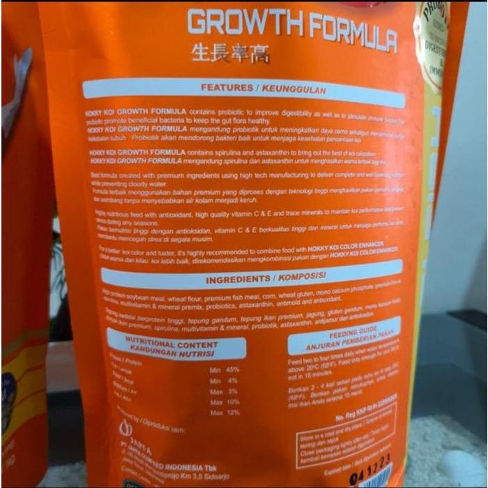 MAKANAN / PAKAN IKAN KOI HOKKY GROWTH FORMULA KEMASAN BARU 1 KG