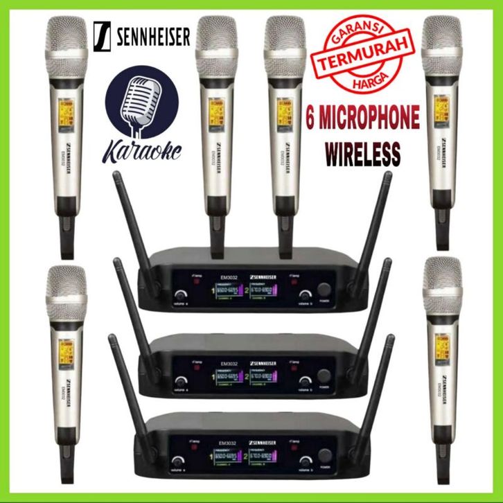 6 Microphone Wireless Sennheiser EM 3032 P6 Mic Karaoke ,Ceramah dll.