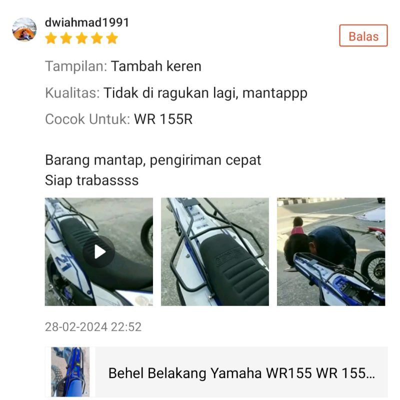 Behel Belakang Yamaha WR155 WR 155 Bracket Belakang Untuk Menaruh Tas