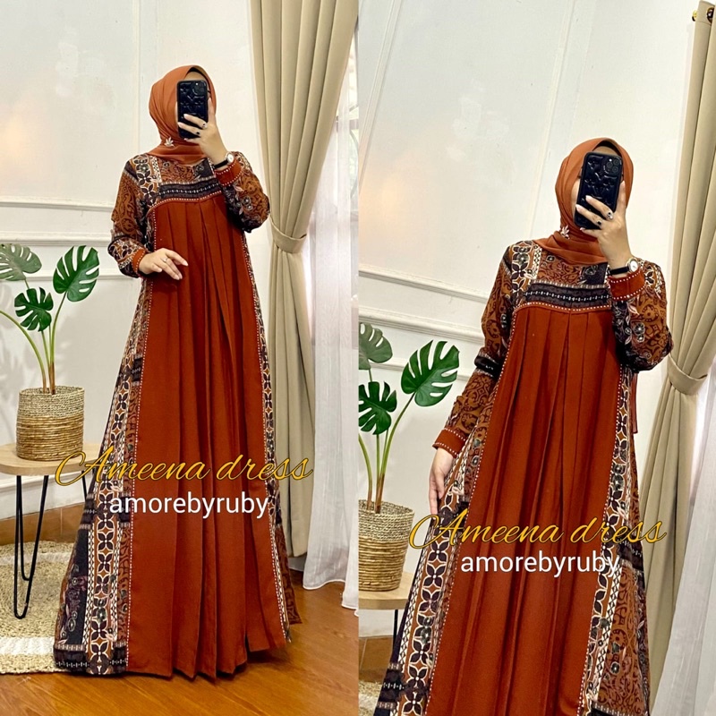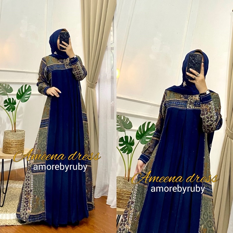 AMEENA DRESS AMORE BY RUBY GAMIS MOTIF BUNGA KONDANGAN ALLSIZE