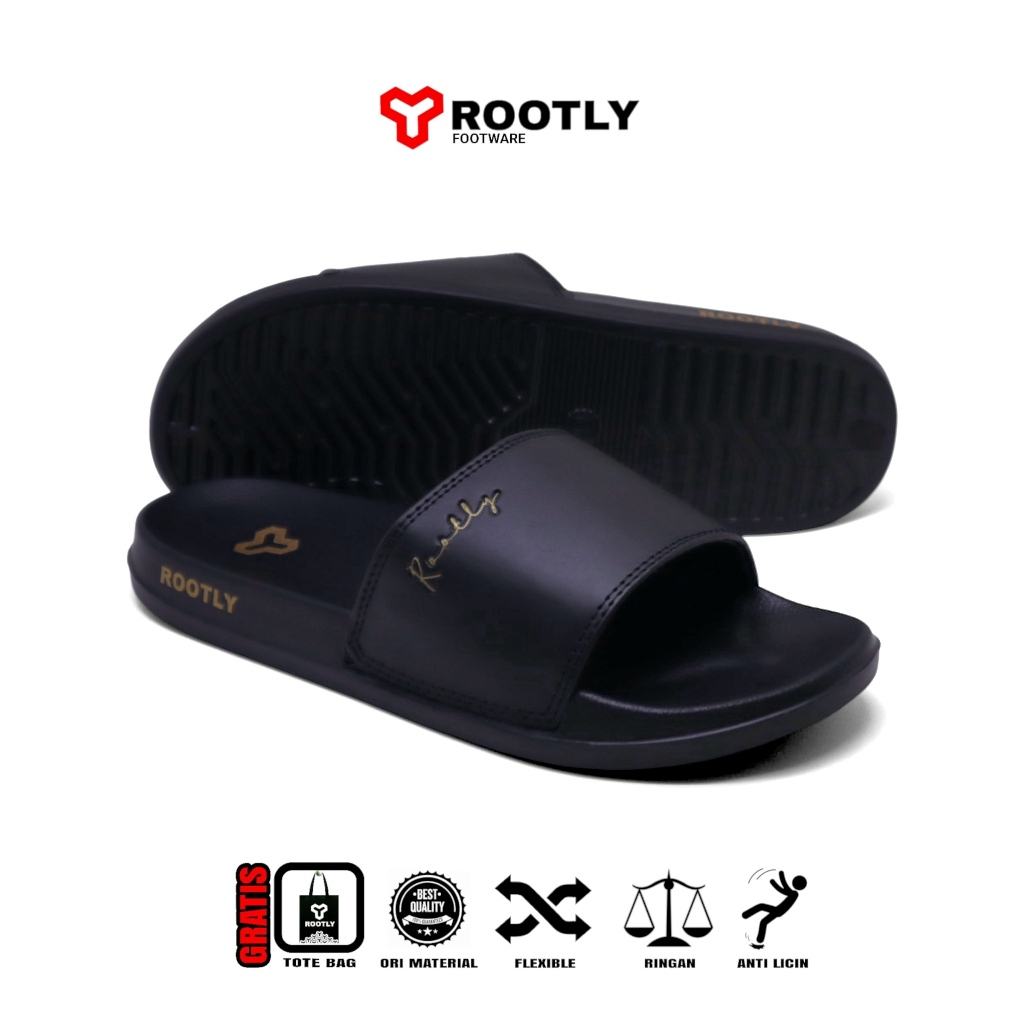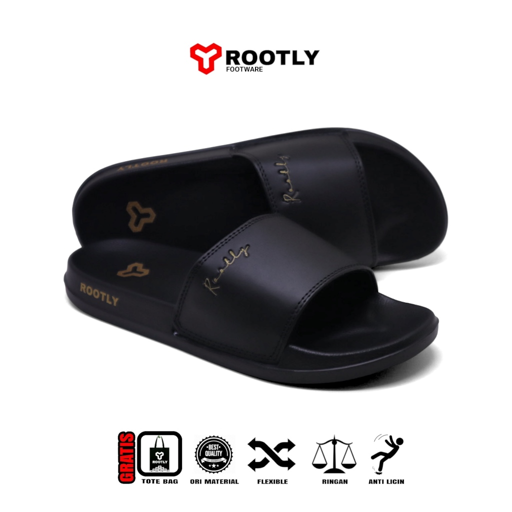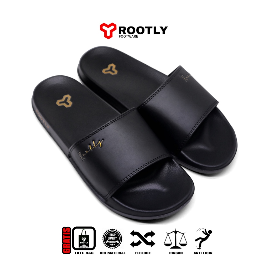 Rootly - Sandal Slop Pria Wanita Lucida Black gold Terbaru Ringan