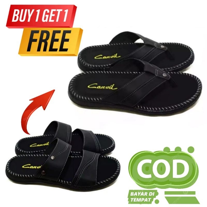 PROMO BELI 1 PASANG GRATIS 1 PASANG BUY1 GET1 SANDAL PRIA FREE BOX DAN STIKER SANDAL KULIT KARET VIRAL