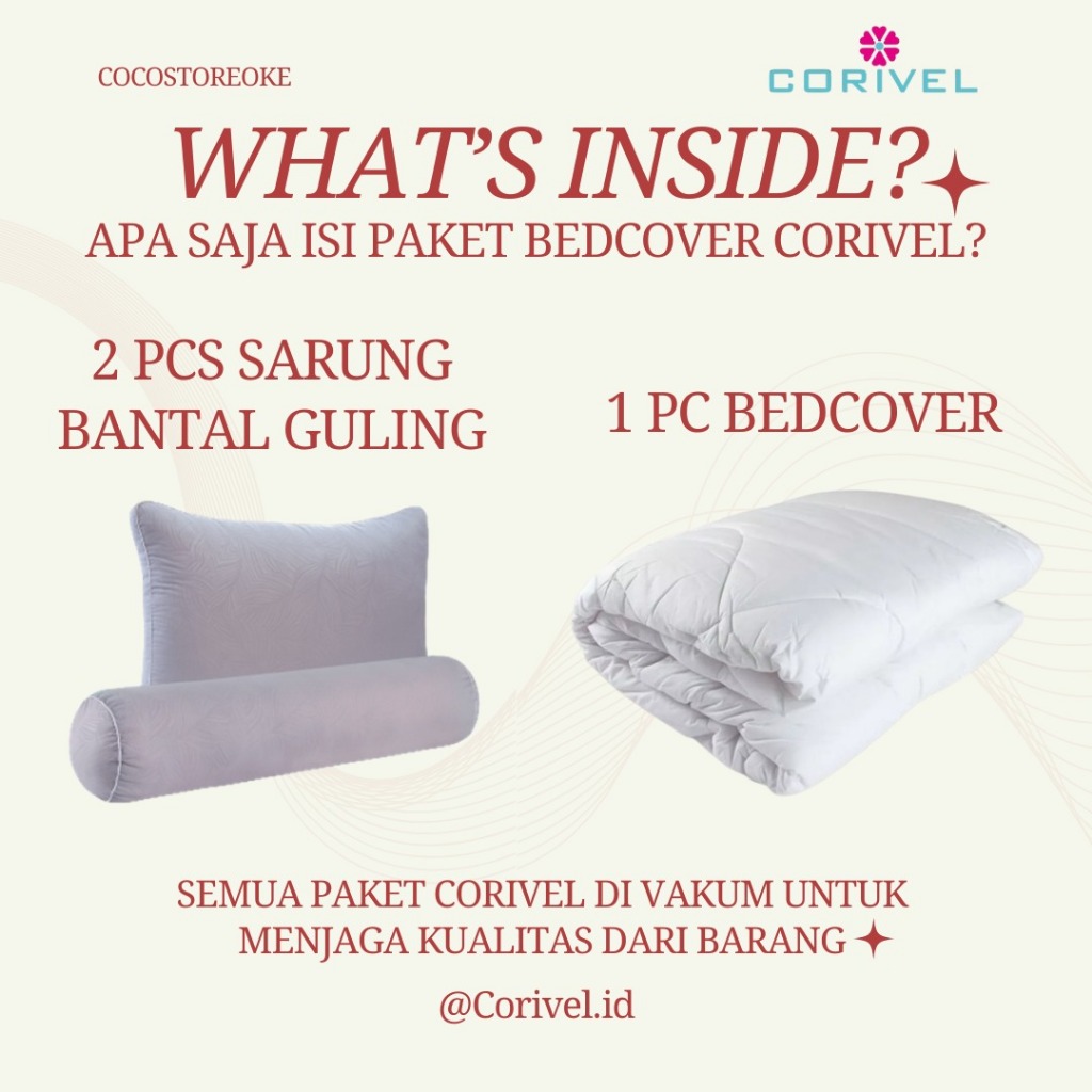BEDCOVER SET KING 180x200 CORIVEL Set Sprei, Sarung Bantal & Guling (BERHADIAH SARUNG GULING)