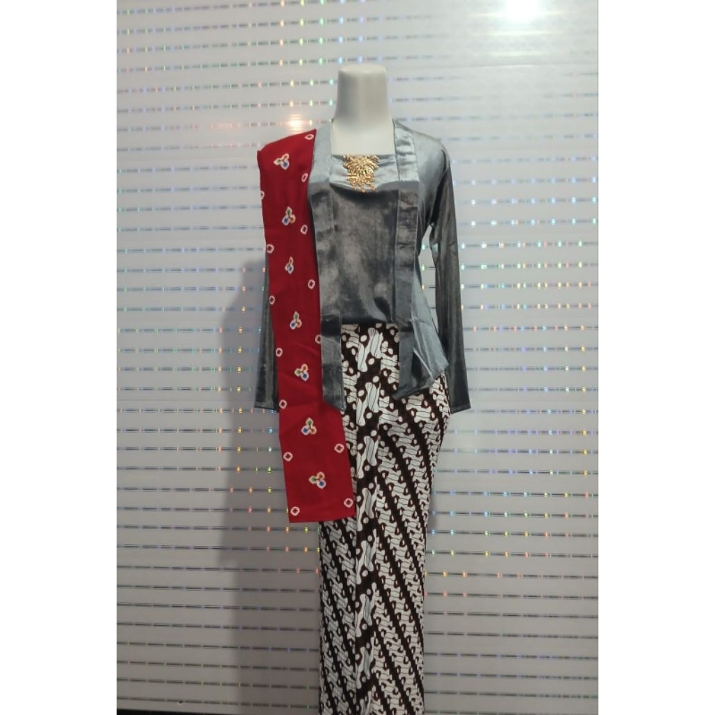 [ 1set ] kebaya beludru bonuss selendang batik jumputan