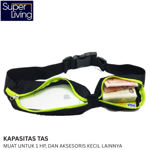 Tas Pinggang Olahraga Go Belt Double Pocket Running Belt Tas Jogging Model Ikat Pinggang