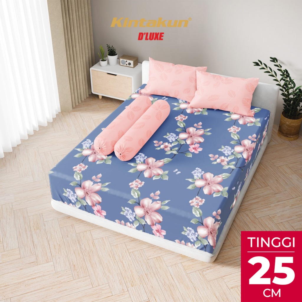 Kintakun Bed Cover Set Fitted 160 x 200 DLUXE Aesthetic Bunga Microtex Tinggi 25 cm B2