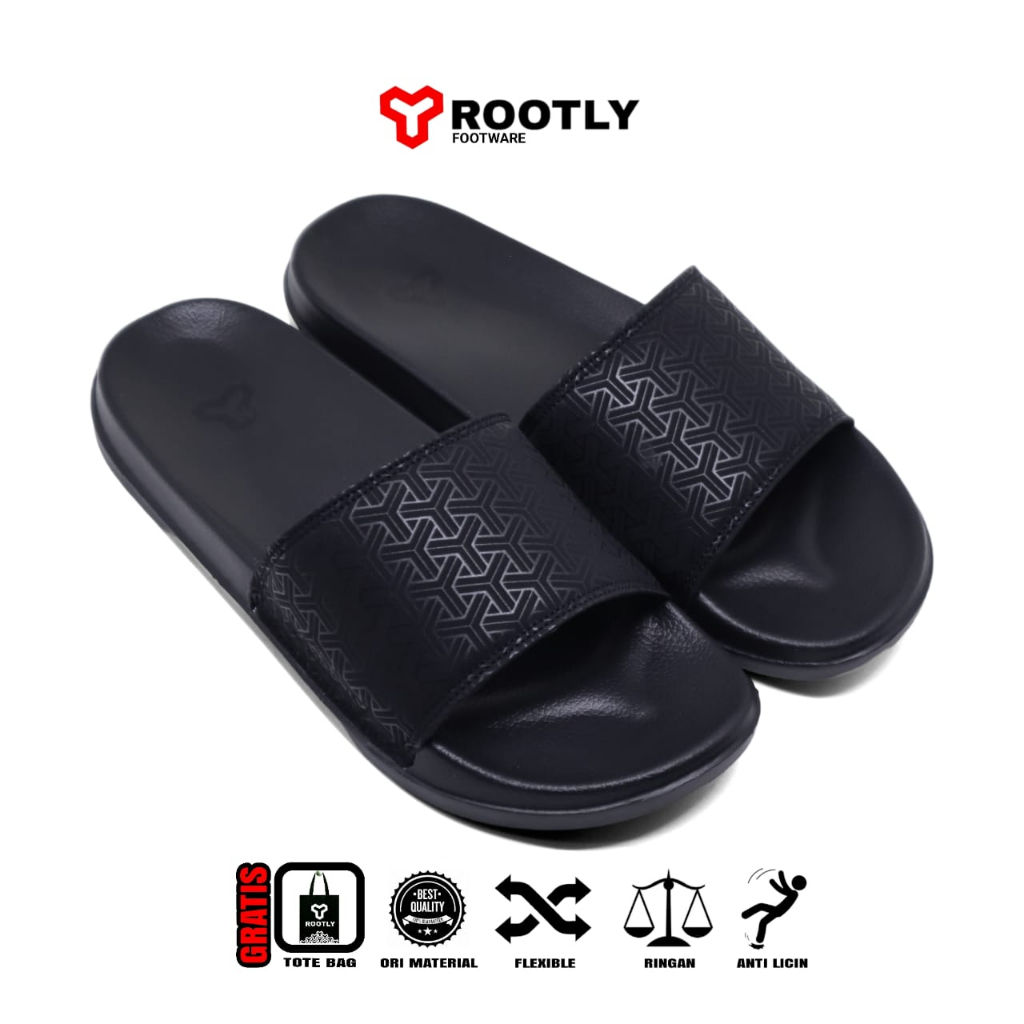 Rootly - Sandal Pria Motif Full Black Flip Flop