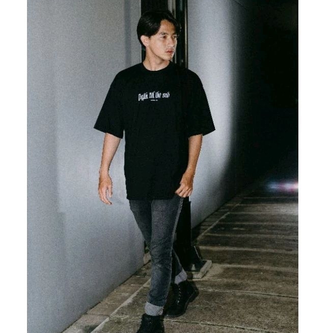 Kaos Oversize Pria Black kuning mengkilap Fight Till The End