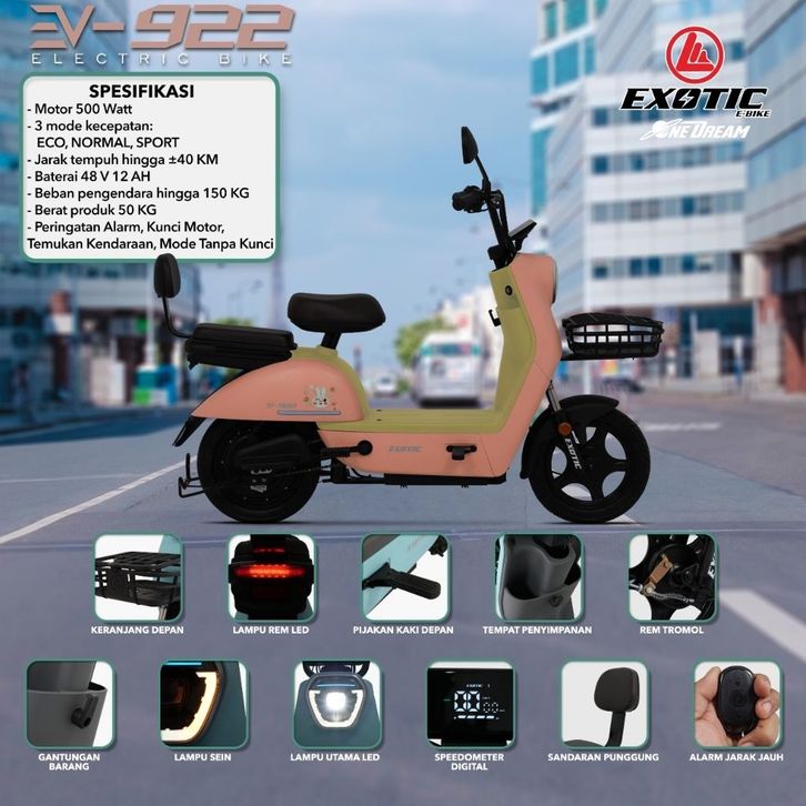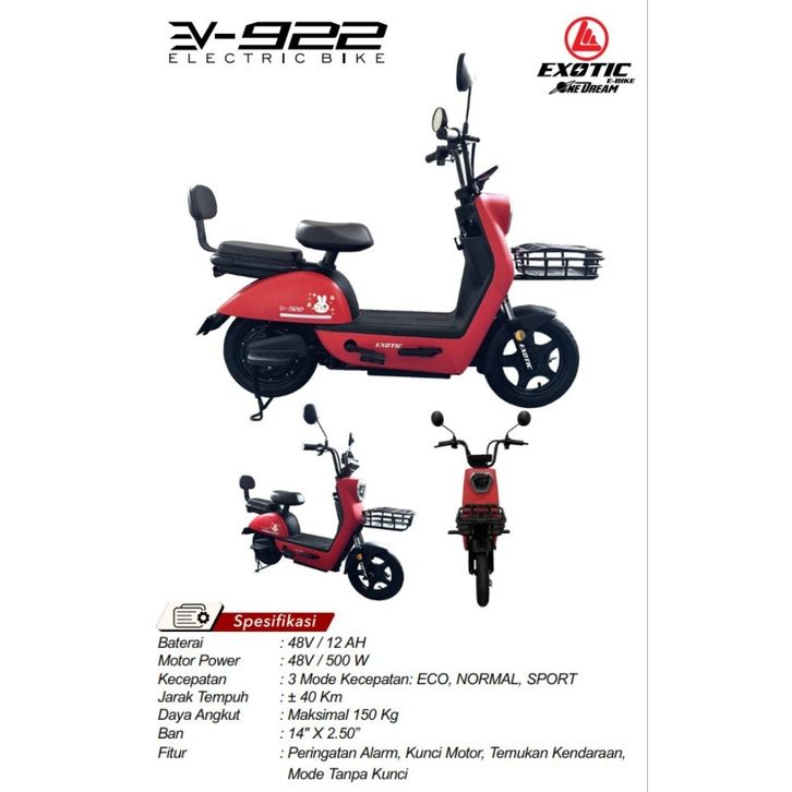 SEPEDA LISTRIK DEWASA EXOTIC EV 922 BX ELECTRIC E-BIKE SEPEDAH ANAK LAKI LAKI PEREMPUAN DEWASA MURAH TERBARU TANPA DP