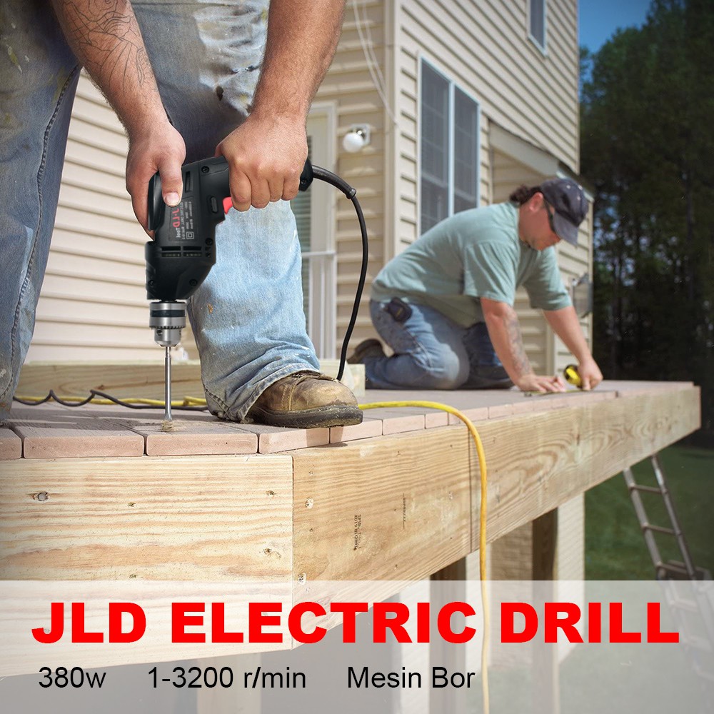 JLD Mesin Bor Listrik Bolak Balik UK.10MM Bor Tangan Listrik 380W Bor Beton Bor Tembok Alat Bor JLD Bor Obeng Bor Kayu