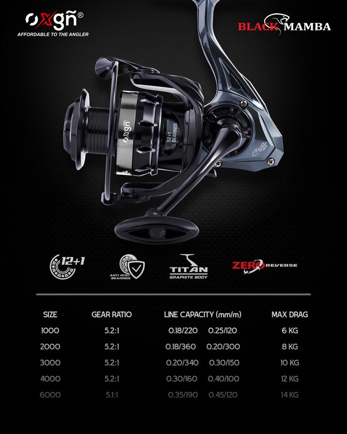 REEL PANCING OXGN BLACK MAMBA GEN 2.0 12+1BB I 1000-6000 POWER HANDLE