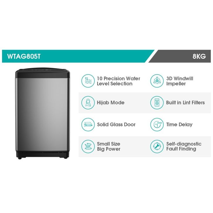 HISENSE WTAG805T Mesin Cuci 1 Tabung Top Loading 8 Kg Washing Machine Garansi Resmi