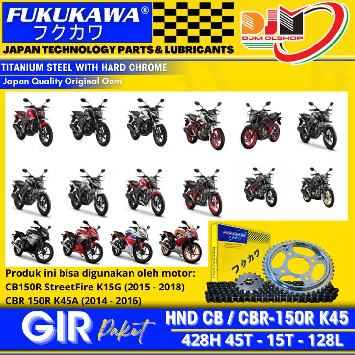 Gear Set ALL NEW CB150R CBR 150R Rantai 428H-128L-45T-15T Lubang 4 FUKUKAWA