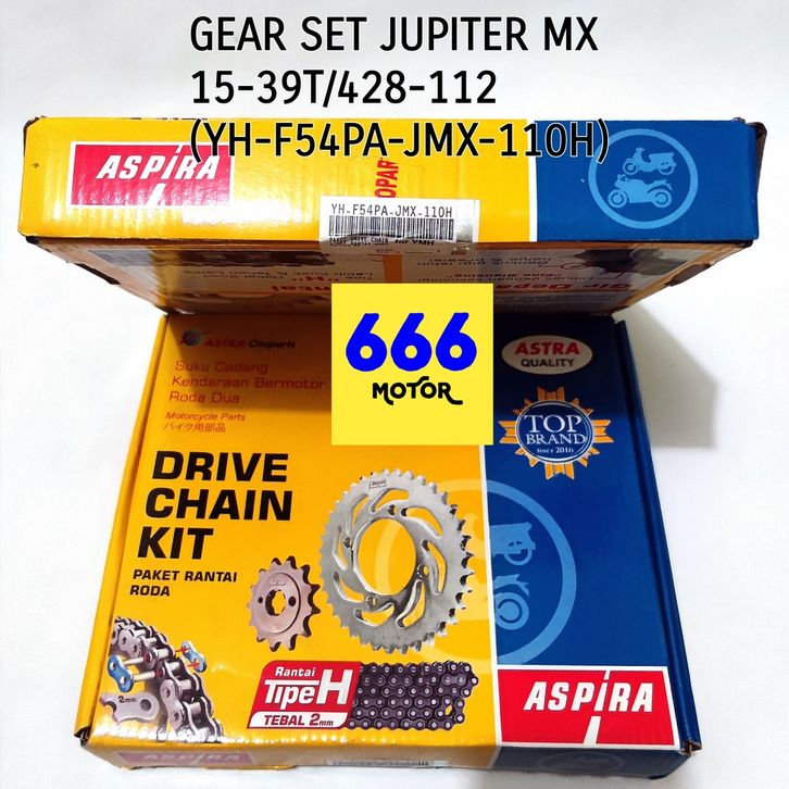 GEAR SET DEPAN BELAKANG PLUS RANTAI JUPITER MX 15-39T/428-112 (YH-F54PA-JMX-110H) ASPIRA ASTRA