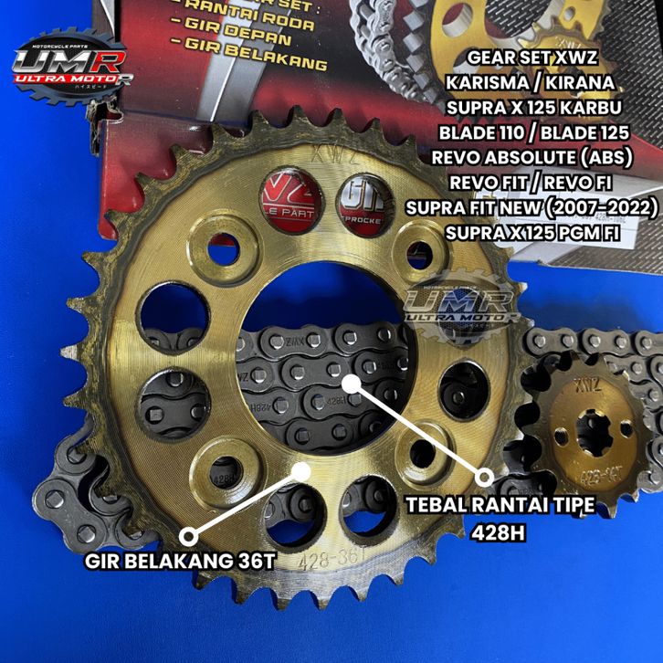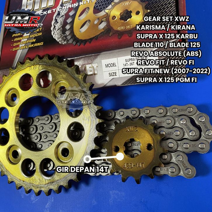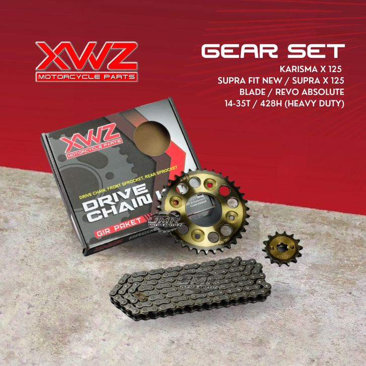 GEAR GIR SET GIR PAKET SUPRA X 125 FI SUPRA FIT NEW KARISMA REVO 428H HEAVY DUTY XWZ