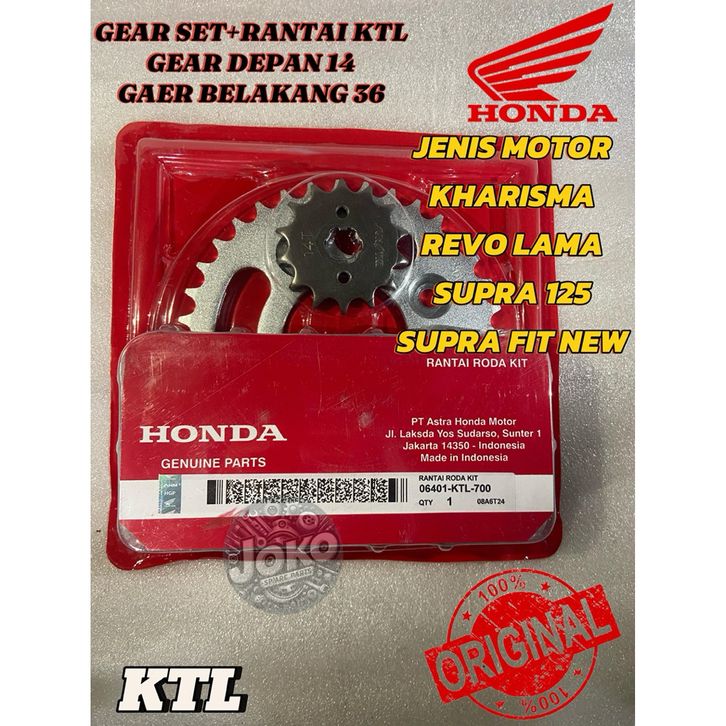 GEAR SET RANTAI ORIGINAL HONDA KTL SUPRA X 124 KHARISMA, REVO LAMA, SUPRA FIT NEW ORIGINAL HONDA