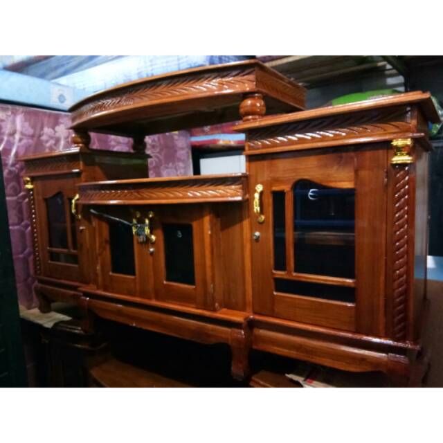 (Jabodetabek Only) Buffet Topi / Rata Rak TV Diswar Kayu Jati Anti Rayap Jamur Air